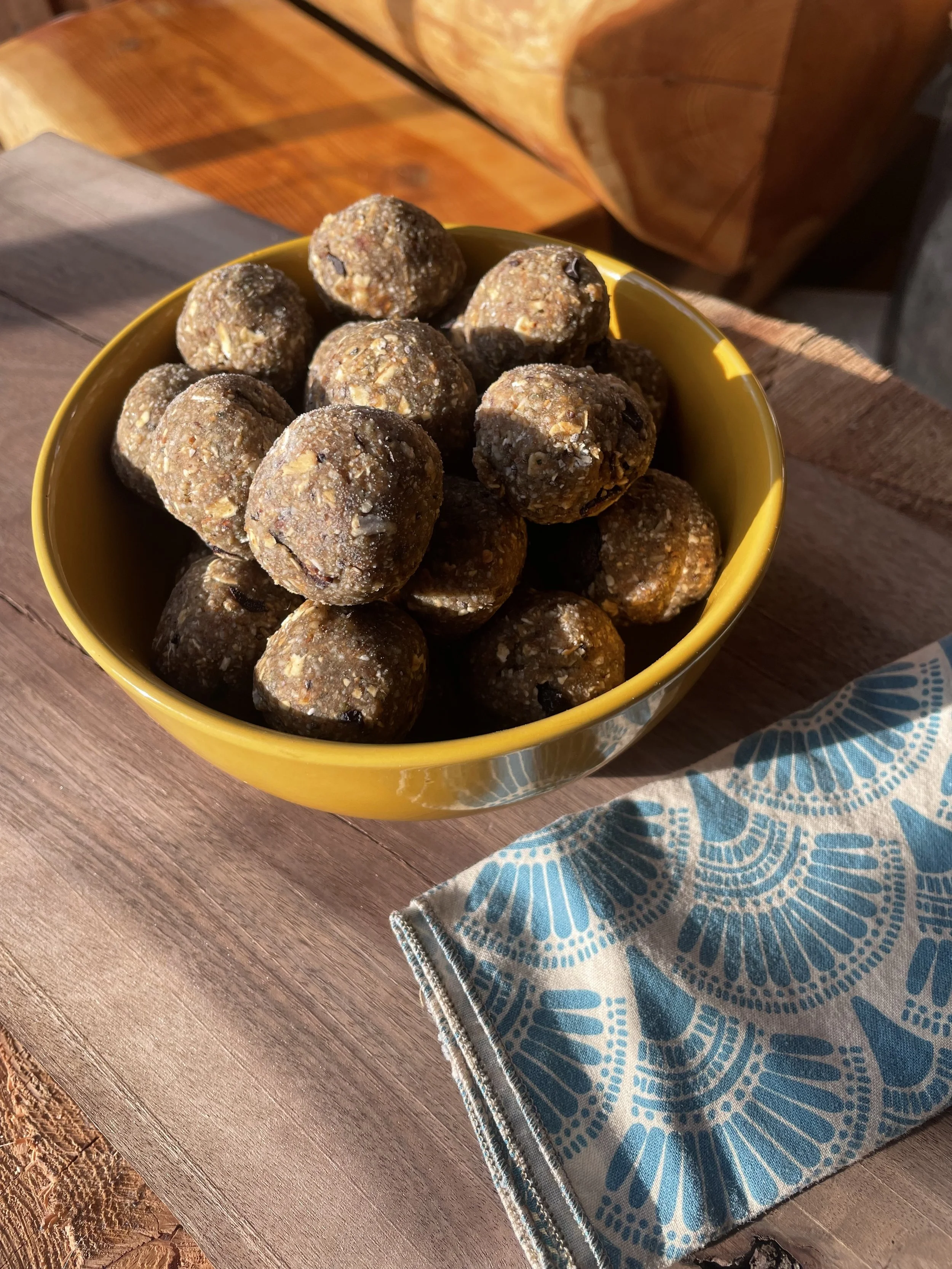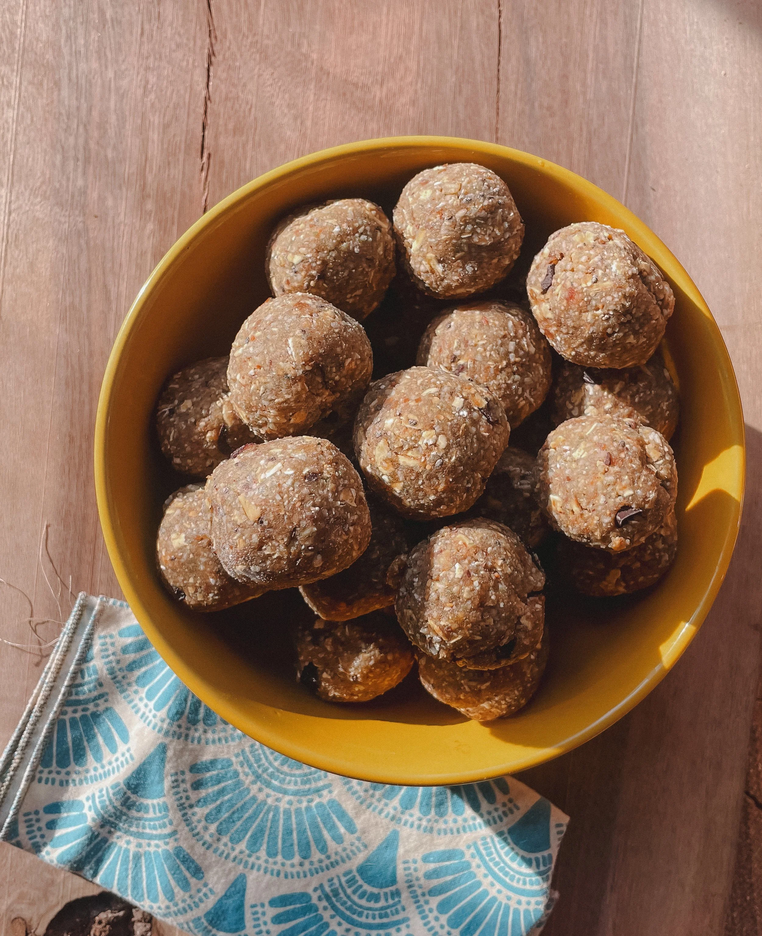 The bites were a recipe I survived off of after having my first child. Breastfeeding and producing milk takes a lot of energy. These bites are clean and easy to snack on. They hold in the fridge or freezer and you can take them out as needed or even put them on your nightstand of a late night & early morning snack.